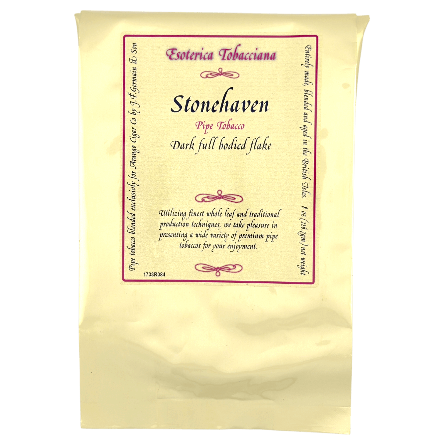A marriage of air-cured leaf and Burley with selected dark Virginia. Hard pressed and aged to produce brown flakes with dark undertones. A traditional English flake favored by experienced pipe smokers.