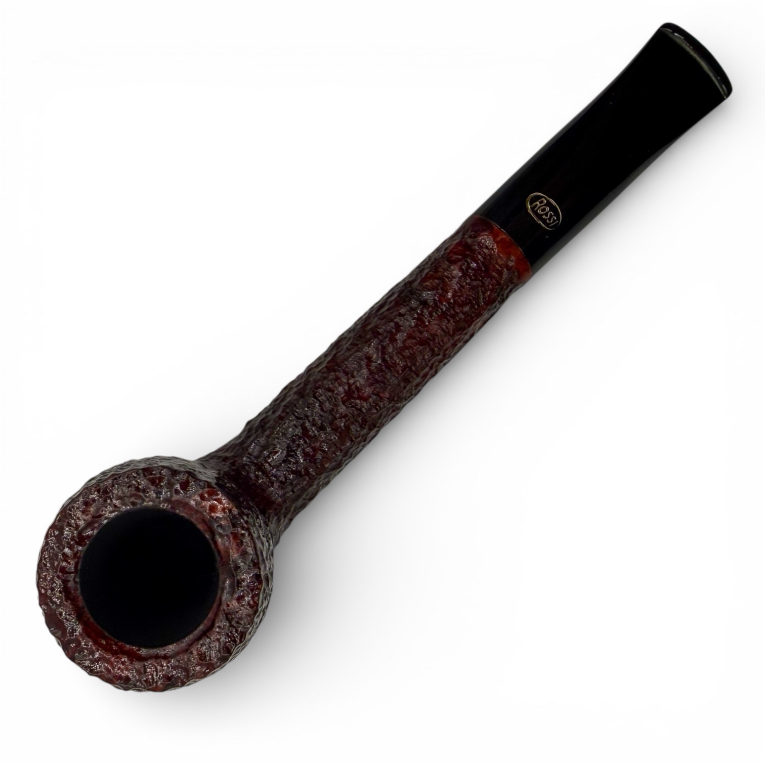 The “8812” is a eccentric Canadian design, due to its subtle bend. It’s a popular choice among customers for its overall length and classic sense of proportions and lines. Here in Rossi’s Sitting series, it features a flattened panel along the underside, allowing it to sit soundly on a flat surface. A great choice to recommend to customers looking for a new desk pipe, it comes dressed in a dark brown, deep-textured rustication and features a jet-black, oxidization-proof acrylic stem.